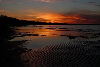 We set off for Brown's Beach so that we would have a short ride back to Penneshaw on the final day. It was quite a long day in the saddle - about 83km, but good riding. We took on some gravel road but once again very heavily corrugated and also quite busy - even tourist buses on route! However as there was a geocache to do it was worth it! Gravel roads can be very relaxing and laid back, but with bad corrugations and loose material you need to concentrate hard and any passing traffic becomes an issue - we found that the roads had wide soft shoulders which you can't ride on as you sink into them and you don't want to hang around in the middle of the road relying on the motorist to give you enough room. We stopped at the Prospect Hill Lookout and the views were beautiful. Arriving at Brown's Beach we pulled in thinking that the sandpit of a car park we first came to was the campsite - luckily not as we found out by going a little further in. It is a gorgeous spot - right on the beach and with little campsites in the trees. It was very quiet - too close to Penneshaw for the car tourists to stop. The beach became our home as the three days we spent there were very hot and we just got in and out of the sea all the time to keep cool. We walked along the beach watching the pelicans and black swans that call Brown's Beach their home. It's amazing that over time you begin to observe the way these birds behave and learn a lot - for instance, if you just stopped for lunch or for the night you might look at the swans floating about and think they're pretty cool, but we noticed by observing them that they were eating the seaweed and feeding it to the cygnets as well. The sunsets were exceptional.