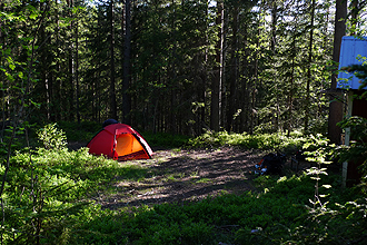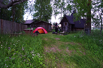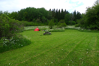 We waited to pitch the tent and then Mike found a slightly better spot over the other side of the road near an abandoned shack. Fewer bugs! A good night's sleep was had by all...