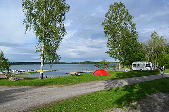 We were up to leave at 8:30 am and had a pleasant day's riding to our campsite at Hargshamn. We were still in our warm layers of gear but at least it didn't rain as much and once we arrived at the it has turned into a nice day. The riding was less hilly than yesterday which was welcomed. We arrived at our seaside camp at 2pm. We had bought enough food so didn't have to stop en route to shop. The route was very pretty with flower filled meadows and our first real lake views. The roads were also quieter.