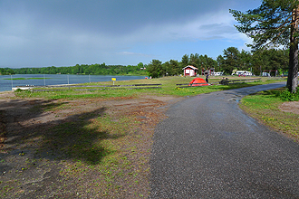 We stopped at a picnic stop around 64 km and there was an interesting info board which showed various picnic/fishing sites and where camping was permitted, which had toilets etc. It was a lovely spot in itself with a jetty for swimming off, but it also showed that there was a pay campsite about 4 km further on which Mike had had in the GPS. What a lovely place! Rasua Camping. The site jutted out on a finger of land into a huge lake and there was a tiny area for tents of which ours was the only one. We pitched with a beautiful view of the water. No bugs here either, but quite cold and very windy. The closest shops were 5 km away so we decided to make use of the food we had and just relax. It was a lovely place with spotless facilities and very nice people.