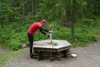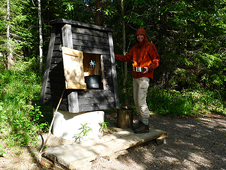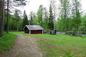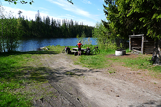 A long day's riding after our rest day! We had a lot of gravel road today again. We stopped for a geocache at a forest hiking hut not long into the day. Wow, what a wonderful hut! Well built and clean and fresh inside. These Scandinavians sure know how to build wood huts - No dust at all.