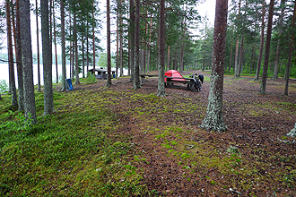 We ended up at a bush camp 500 m from the village of Muurasjarvi where we stopped for more food. Many mozzies and flies at the bush camp but it was in a good spot with the shop nearby and the lake for swimming. It was at a parking area off the road and there were quite a few fishing row boats there which people obviously left to use during the summer.