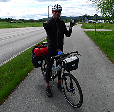 We stopped at a beautiful place on the water for a snack and a geocache. It was no longer raining but getting back on the bike was freezing and my hands went totally numb and would not warm up. It took an hour for the feeling to come back! Rule number one for me is "do not remove gloves for eating"! A man told us that it was the coldest start to summer in 84 years and we could believe that. With that though the road was very picturesque and the green landscape and lake views were exactly what we had expected.