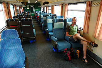 I had a good feeling about her advice and seemed like we could trust her. It was already about 11am. We packed away the tent, dusted the dirty bikes down again and checked the bikes and our single large bag which contained our panniers, into the luggage storage. We each kept a pannier with our clothes, remaining food, etc. We also kept the tent out to reduce the cost of the storage as we wanted to keep it to EU 25 per day as we might have needed to pay for three days (It seemed that the storage was charged at a flat rate per day or part thereof). This was a bit of an effort as we each had a pannier and a small back pack and then took turns carrying the tent. Luckily the bus had luggage storage racks.