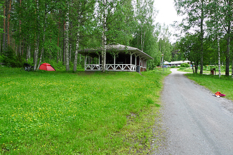 We had a lovely PIPING hot shower at the camp site. We pitched our tent close to the toilet (convenience is all) and were again able to sit outside the tent without being bitten. There was a grilli nearby, which is a little hut with a pitched roof and inside is a fireplace. These were very common in Finland (in Sweden the fireplaces are usually open air) and you can imagine them being very snug in winter. A group of people lit a fire inside to perhaps cook, I don't know, and the next thing smoke was billowing out the door and all the people left. An unsuccessful grilli! We were tired and asleep early.