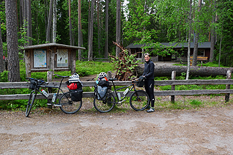 We decided on a rest day today as 8 days of riding in a row is quite a lot for us. We had a lazy start as we were able to sleep in as the sun was not so bright due to the mist which rolled off the river. The campsite had free Wi-Fi which is a bonus. We discovered that there was a washing machine and powder which were free to use. It was a modern machine and we had to figure out what cycle to use which was all in Swedish. We whipped out the net book and looked up Google Translate! It took quite a while to figure out how to use the machine. The washing took a while and we enjoyed the sun in the meantime. We hung it out on the empty washing line and knew it would not take long to dry in the warm sun and cool breeze. We rode a 16km round trip to Skuleskogen National Park. This looked like a fabulous place for hiking. We did shopping in the Docksta township also. We had noticed the previous evening and the same thing happened that night; mist rolls in off the lake and takes a while to clear in the mornings. The camp site was very nice. There was even a pool which was not yet open of course! This was also the cheapest camp site that we had stayed at so far, which with the facilities that were available was unbelievable.
