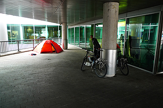 We purchased two 24 hour public transport tickets and found out how to get there; a bus, a train and another bus. We were told we would get a phone call when our luggage arrived and it would be delivered to us. The campsite is very convenient to public transport with a bus stop right outside. It was really cold! We walked to a nearby supermarket to buy some food and then waited for our phone call which never came. We eventually phoned the KLM call centre and were advised that all luggage had arrived but was awaiting confirmation. We were so pleased. We decided to go back to the airport so that we could pick up the luggage ourselves if we could as we needed our tent for that night! At the airport we were told that actually none of the bags had arrived but were all due at 11:15 pm. We had the choice to wait for them or have them delivered. We were livid! A few hours ago we were told they were there and now they were not! I rang the call centre again to find out what was going on and to submit feedback. We went back to the campsite but the office was closed so had to ring the emergency number. Luckily they had a hostel room available and we had our sleeping bags in carry-on luggage, so we were sorted for a night with a roof over our heads. This was around 9pm. The next day we booked in again for another night in the hostel as we didn't know when to expect our tent! We then finally had a chance to go into the city to have a look around. It was freezing cold and very wet. The rain hadn't stopped at all in the last 24 hours! We stopped in at the airport again on the way home and were told that our luggage was there, but yet to be processed, and would be delivered to us that afternoon. It all arrived at our hostel room at about 5:00 pm. Mike put the bikes together and we were very happy to have all our things and everything in good order! We could finally sleep easily!